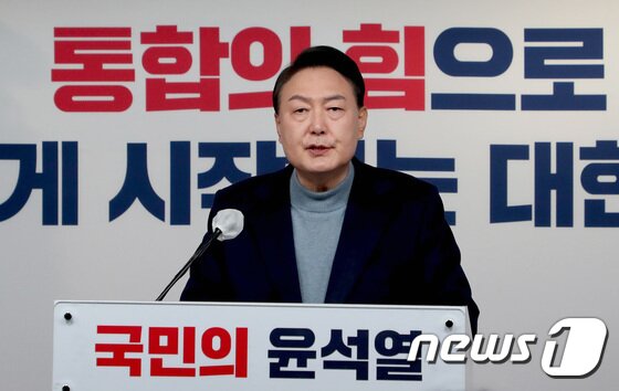 | 윤석열 대통령 당선인이 13일 서울 여의도 국민의힘 당사에서 대통령직인수위원회 위원장 및 부위원장 인선결과를 발표하고 있다. 윤 당선인은 이날 대통령직 인수위원회 위원장에 안철수 국민의당 대표, 부위원장에는 국민의힘 권영세 의원을 각각 임명했다. 또 기획위원장에는 원희룡 전 제주지사를 선임했다. 2022.3.13/뉴스1 © News1 이동해 기자 |