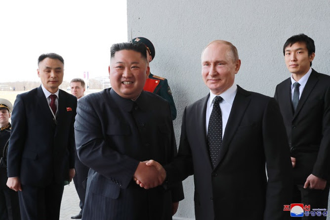 김정은 위원장이 “친선적인 로씨야의 벗들이 열렬하고도 따뜻한 환대를 베풀어준 데 대하여 다시 한번 깊은 사의를 표했으며 뿌찐대통령 각하와 새로운 상봉을 약속하시며 작별의 뜨거운 인사를 나누었다”고 조선중앙통신은 전했다.